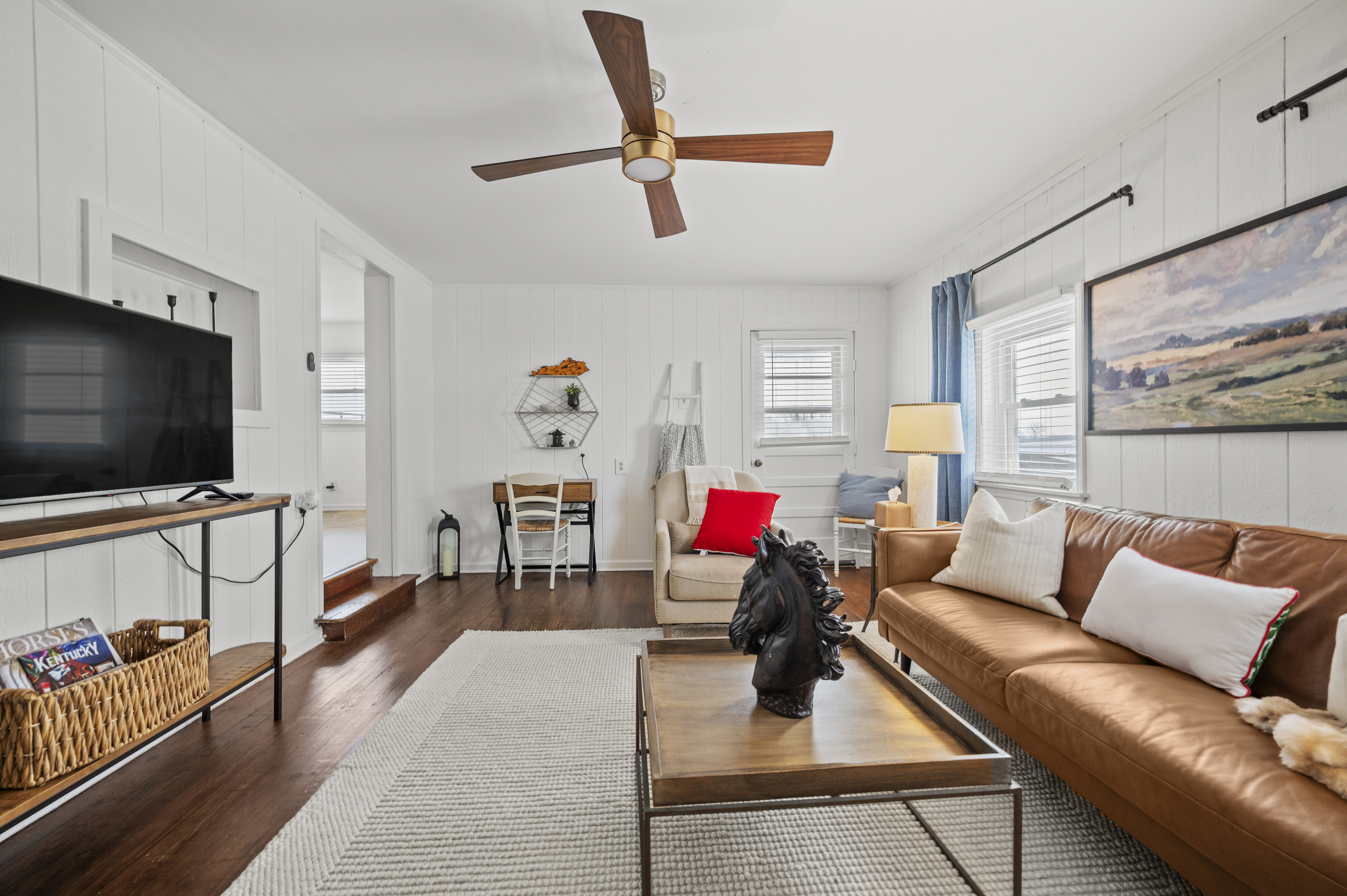 While she may look small, The Jockey Suite is the perfect size for you & your favorite people to gather together. The living room is very spacious offering a smart TV for you to watch all of your favorite shows on your prefered platform. The yard is big enough for any yard games or for the kids to run!