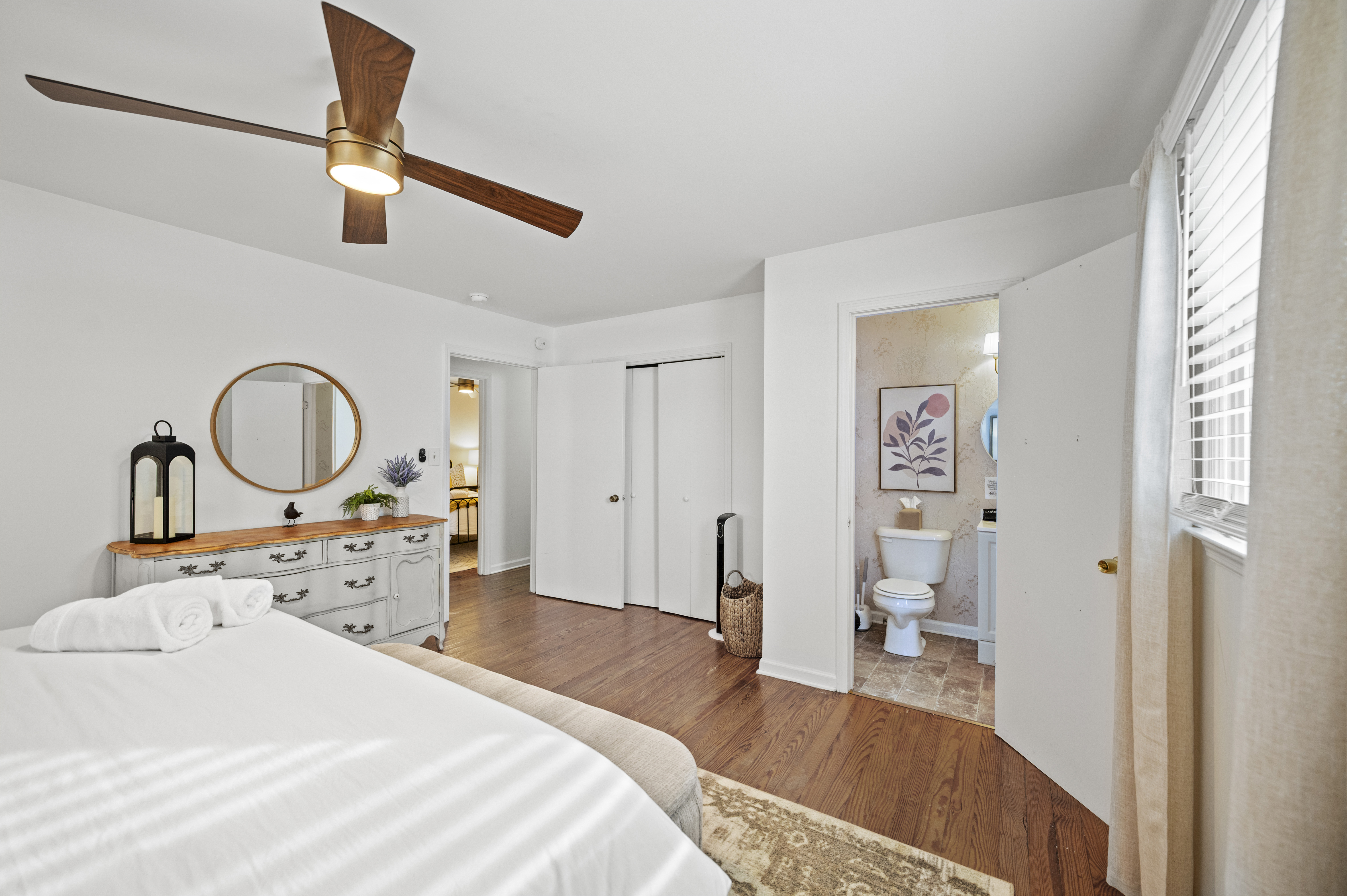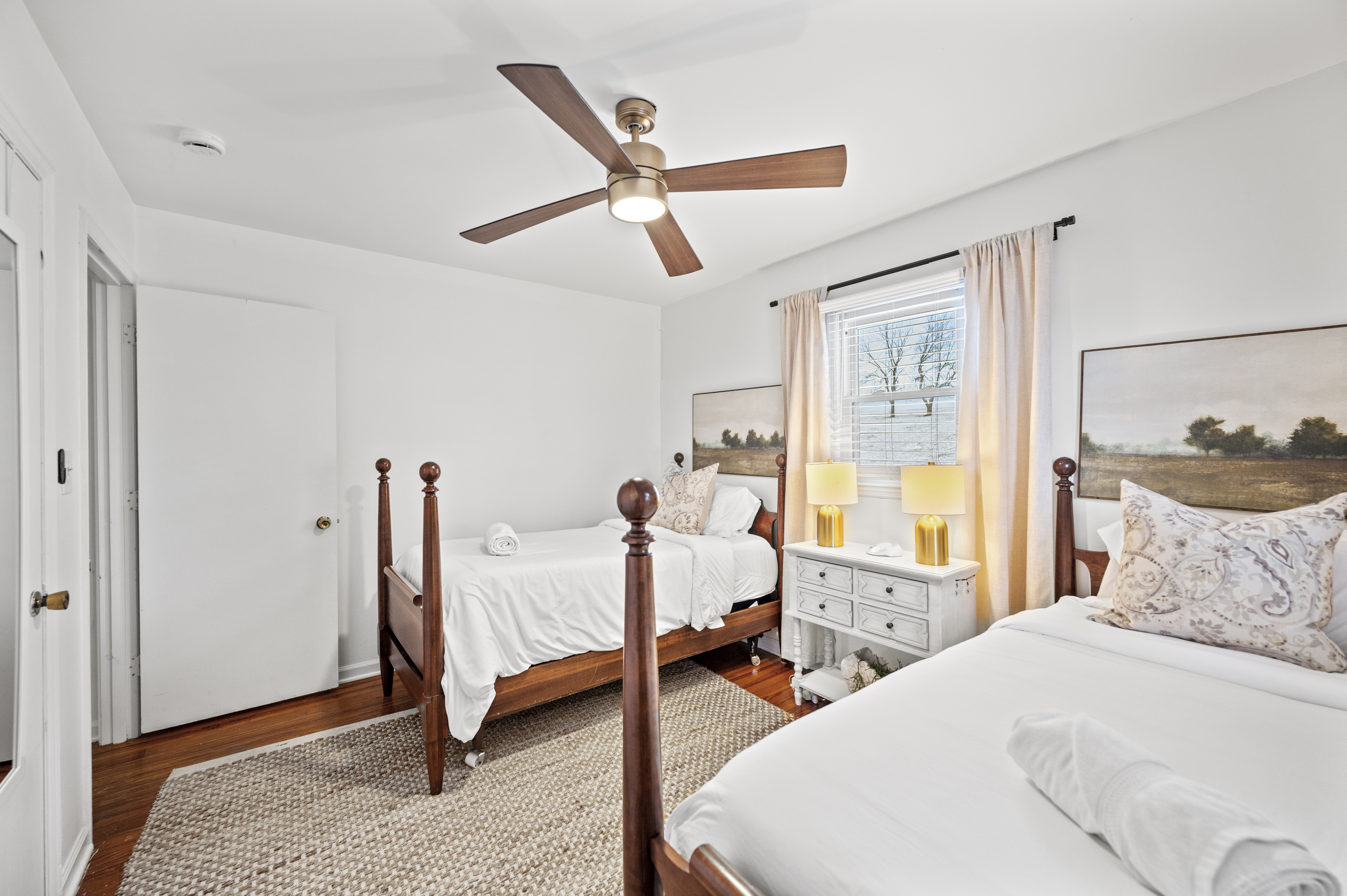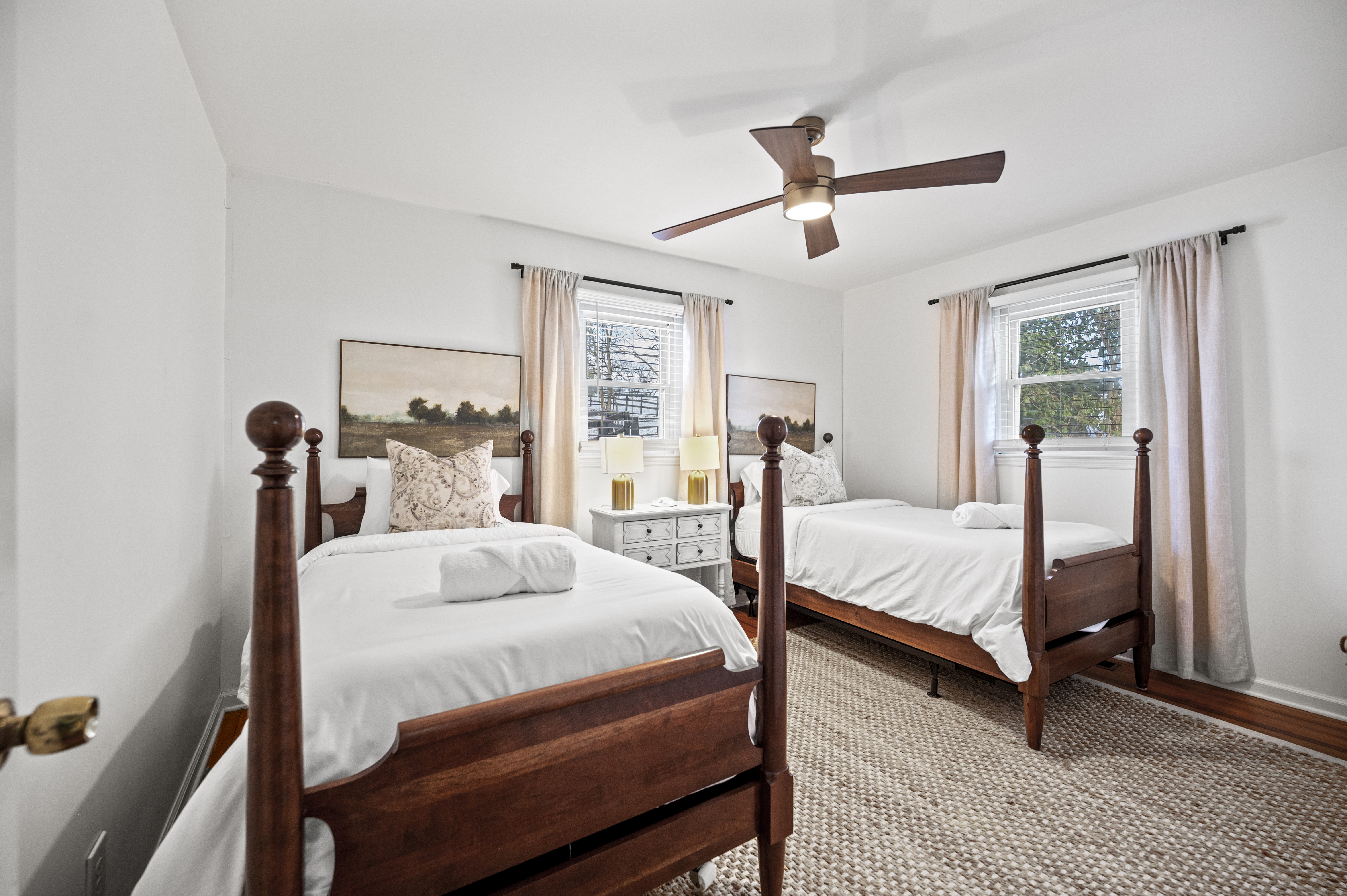 We know you will get a great night's rest when sleeping in The Jockey Suite. With 3 bedrooms & 4 beds, there is plenty of room for everyone! The owner's suite offers a king bed & a half bath. The secondary bedroom has 2 twin beds & the third bedroom has a queen bed. All linens are provided!